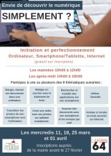 Le CCAS d'Itxassou, en partenariat avec la Fibre 64, organise des ateliers thématiques de perfectionnement sur ordinateur, tablette et smartphone, les mercredis 11, 18, 25 mars et 1er avril 2026.