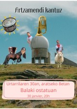 Urtarrilaren 30an, ostiralez, aratseko 8etatik goiti, Artzamendi Kantuz taldea etorriko da Balaki ostatura bere lehen kontzertuaren emaiteko